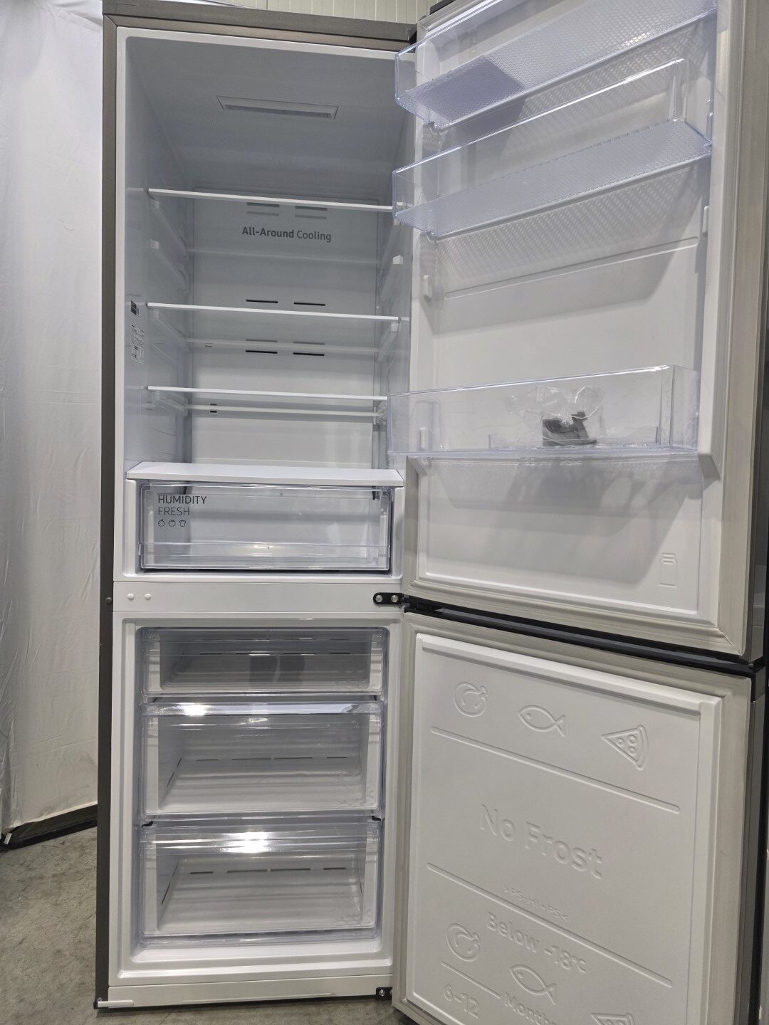 Sistemul All Around Cooling are grija sa raceasca in mod egal si la aceeasi temperatura tot frigiderul, dintr-un colt in celalalt. Temperatura constanta este asigurata de aerul rece suflat in dreptul fiecarui raft. Astfel, fiecare articol este racit eficient iar mancarea ramane proaspata mai mult timp.