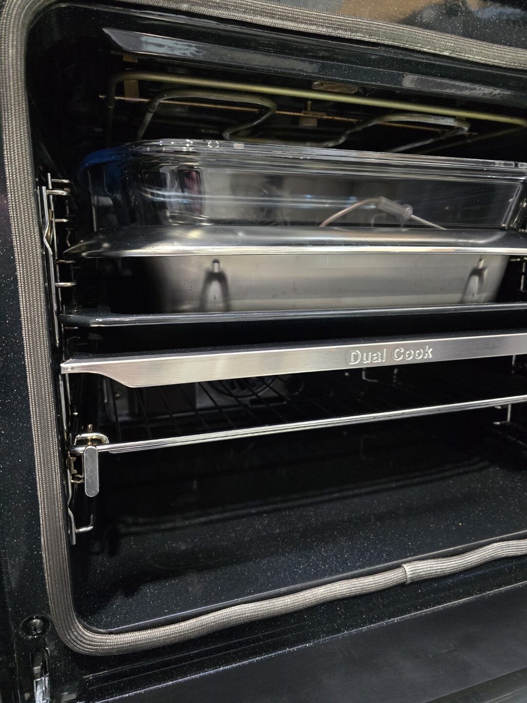 Puteti utiliza cu usurinta si simultan partea superioara si inferioara a cuptorului cu setari (Dual Cook) de temperatura si timp diferite, obtinand rezultate optime de gatire si econimie de timp si energie. Sistemul Dual Cook are 2 zone de gatit, superioara si inferioara care functioneaza independent sau impreuna. Folositi, de exemplu, o zona pentru preparate mai mici sau creeaza doua zone, pentru a pregati o varietate de alimente. Intregul cuptor este disponibil si pentru vase mari.