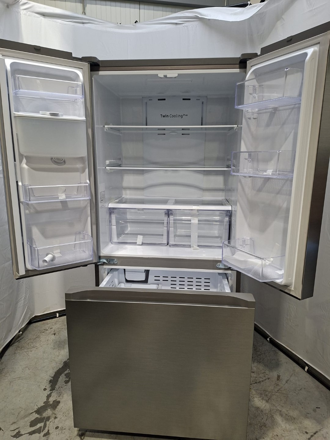 French Door Samsung, 495L, Clasas E, Full No Frost, Twin Cooling Plus, Digital Inverter, Touch control, Wi-fi, Dozator apa, Aparat de gheata automat, Argintiu, RF50C530ES9/EF