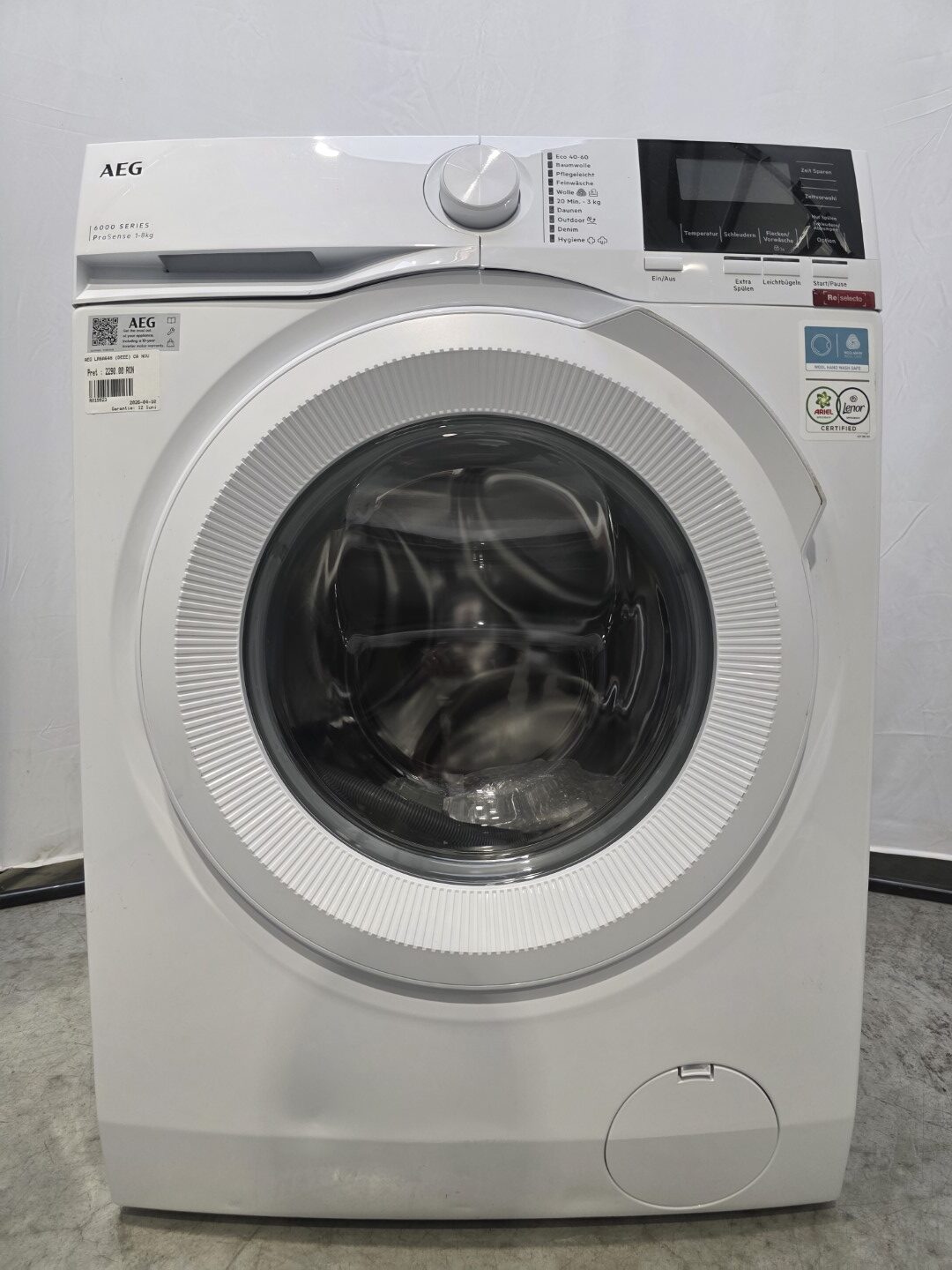 Masina de spalat rufe AEG, 8 KG, 1400 RPM, Clasa A, ProSense, Inverter Motor, Gentle Drum, Aqua Stop, Alb, LR6A648