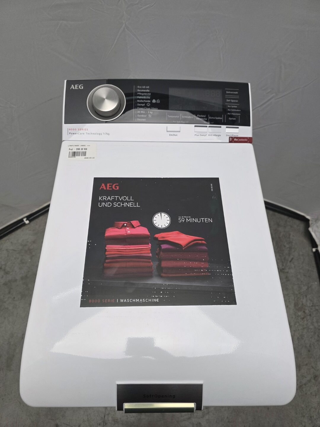 Masina de spalat rufe cu incarcare verticala AEG, 7 KG, 1300 RPM, Clasa A, ProSense, ProSteam, SoftOpening, Inverter Motor, Aqua Stop, Alb, LTR8TL760EX