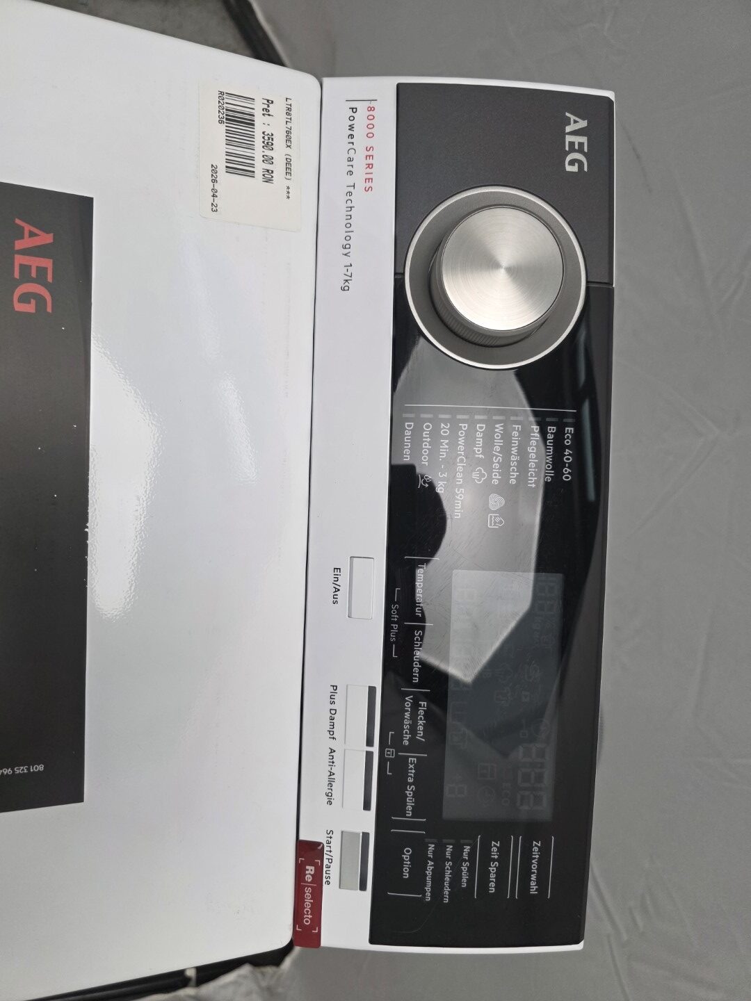 Program PowerClean: Îndepărtare completă a petelor** în 59 de minute la doar 30 °C