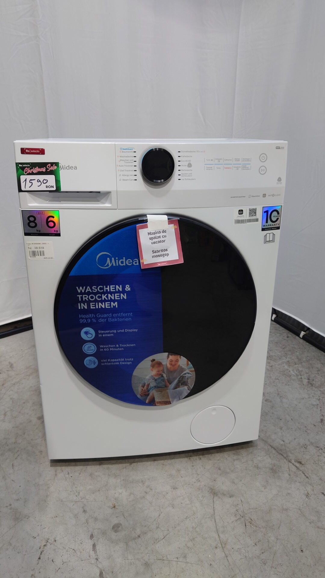 Masina de spalat rufe cu uscator Midea, 8/6 KG, 1400 RPM, Inverter Motor, Steam Care, Turbo Wash, App Control, MF200D86WB-14EAS