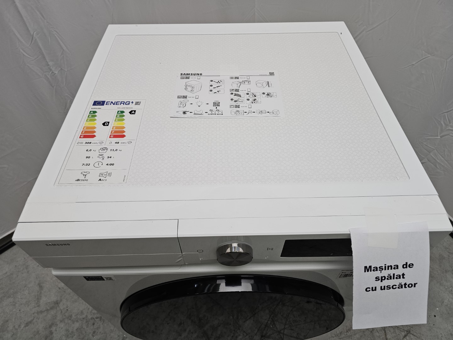 Masina de spalat rufe cu uscator Samsung Bespoke AI WD11DB7B85GWU4, Spalare 11 kg, Uscare 6 kg, 1400 RPM, Clasa D, AI Wash, Auto Dispense, AI Ecobubble, AI Control, Super speed 39 min, WiFi, Alb