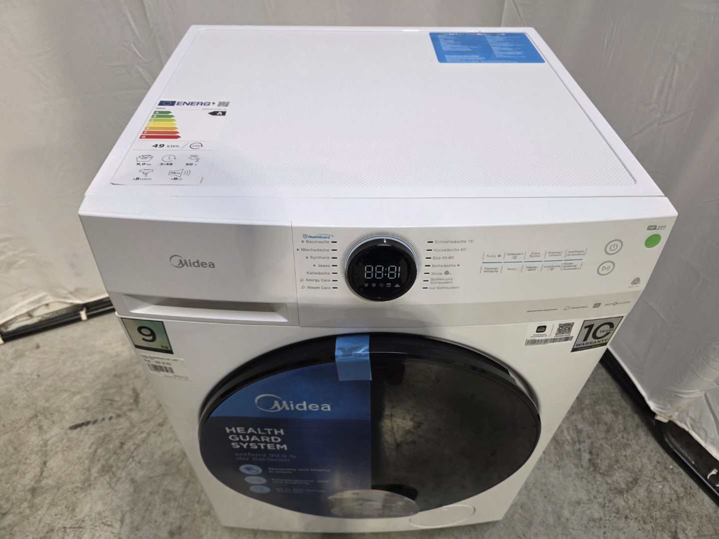 Pre-washHow to deal with stains left by beetroots, carrot juice or tomato soup? Pre-wash comes to your aid, dissolving and removing even the most stubborn stains! | Quick wash in 15 minutesDo you only have a short time to do your laundry? Fifteen minutes – this is enough to wash a small volume (less than 1 kg) or some clothes that only need refreshing. | Auto CleanA clean washer drum means hygienic laundry! An automatic drum cleaning program effectively flushes out any dirt. | Air FreshTo prevent your laundry from clumping, the Midea washer drum makes a turn every 30 minutes. There is a fan to ensure the air circulation and removal of foul smells so that your laundry is clean, fresh and smells nice. |