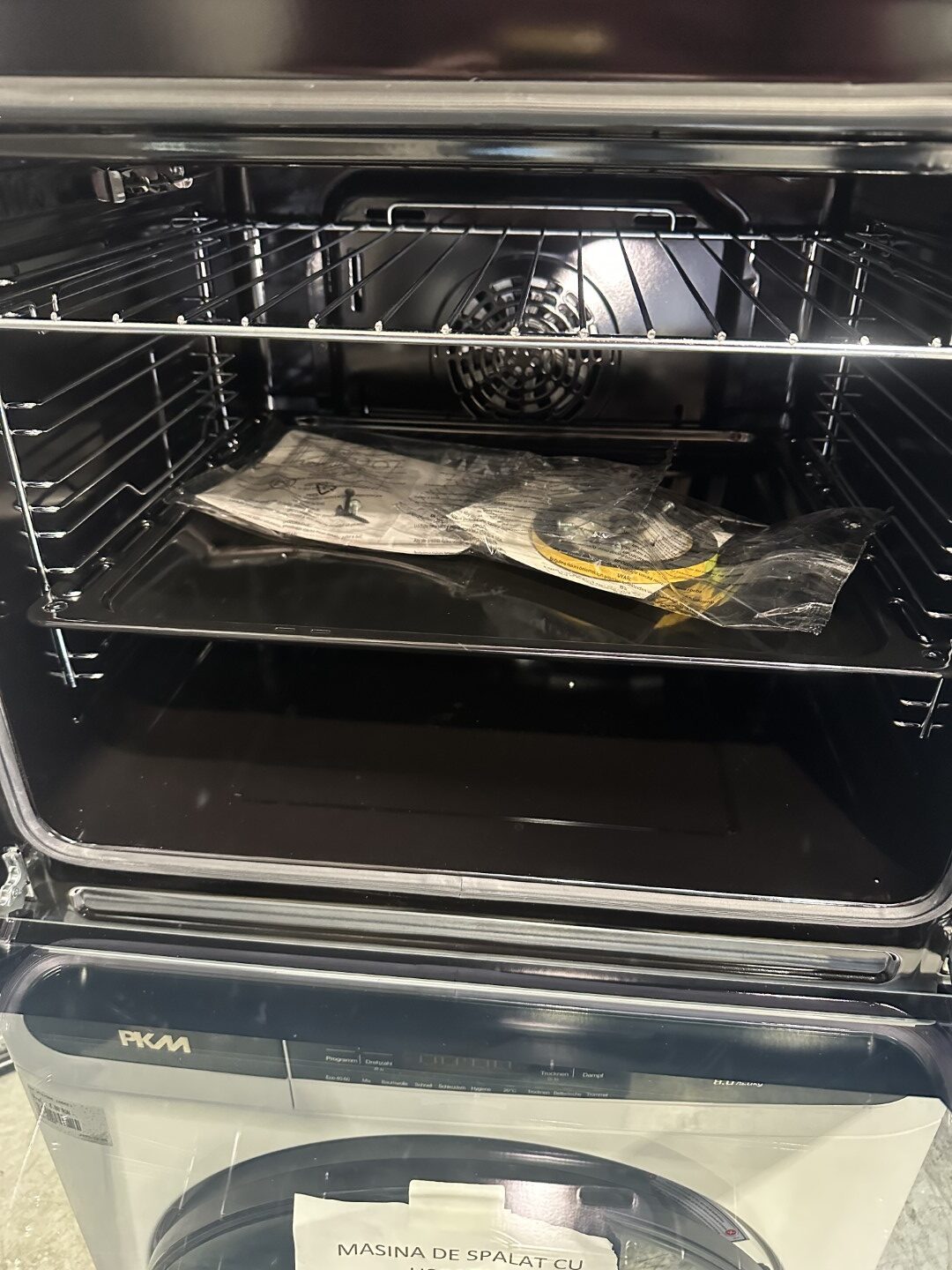 Ușa interioară a cuptorului este complet vitrificată, ceea ce nu numai că oferă un aspect atractiv, dar vă permite și să vizualizați mâncarea.