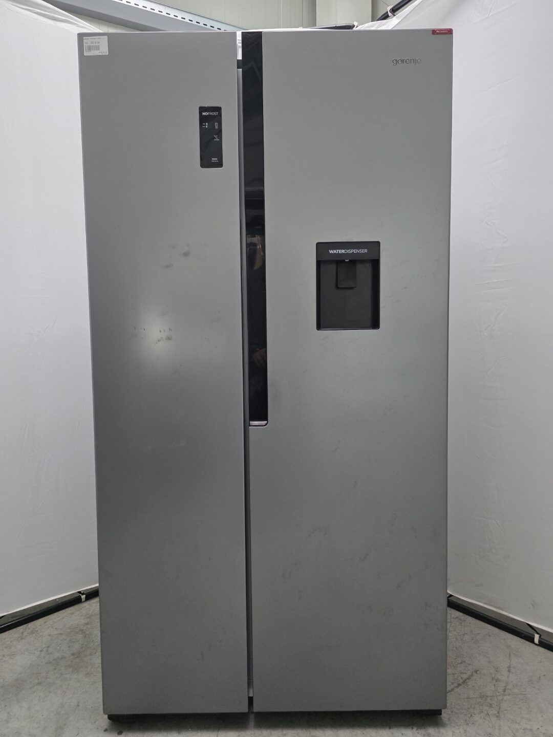 Side by Side Gorenje, 519L, Clasa F, NoFrost Plus, XTRASPACE, Senso Tech, Dozator de apa, Argintiu, NS9FSWD