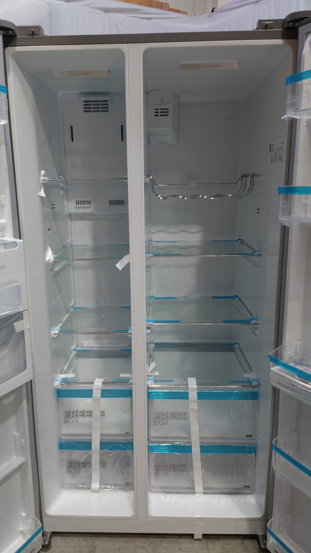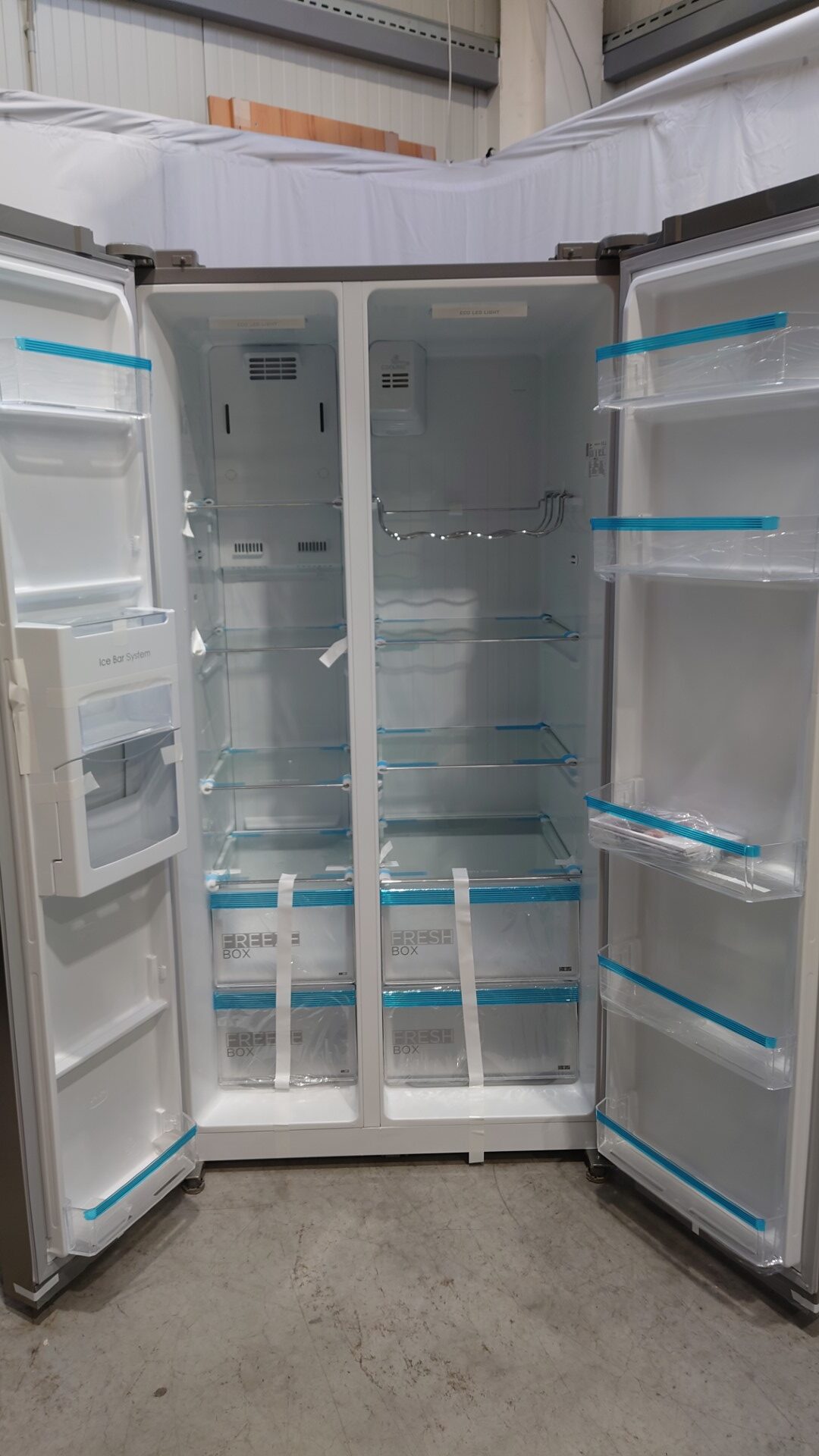 Side by Side Midea, 532L, Clasa D, No Frost, Inverter Technology, Twin Control Indoor, Ice Bar, Argentiu, MERS530FGD02