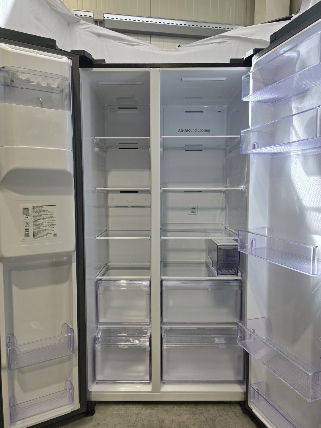 Ofera-i casei tale un aspect modern si elegant. Side by Side-ul Samsung se potriveste si se va alinia perfect cu electrocasnicele si dulapurile tale din bucätärie. lar designul sau minimalist include usi plate, manere incastrate, un afisaj ascuns, un raft plat pentru vin.
