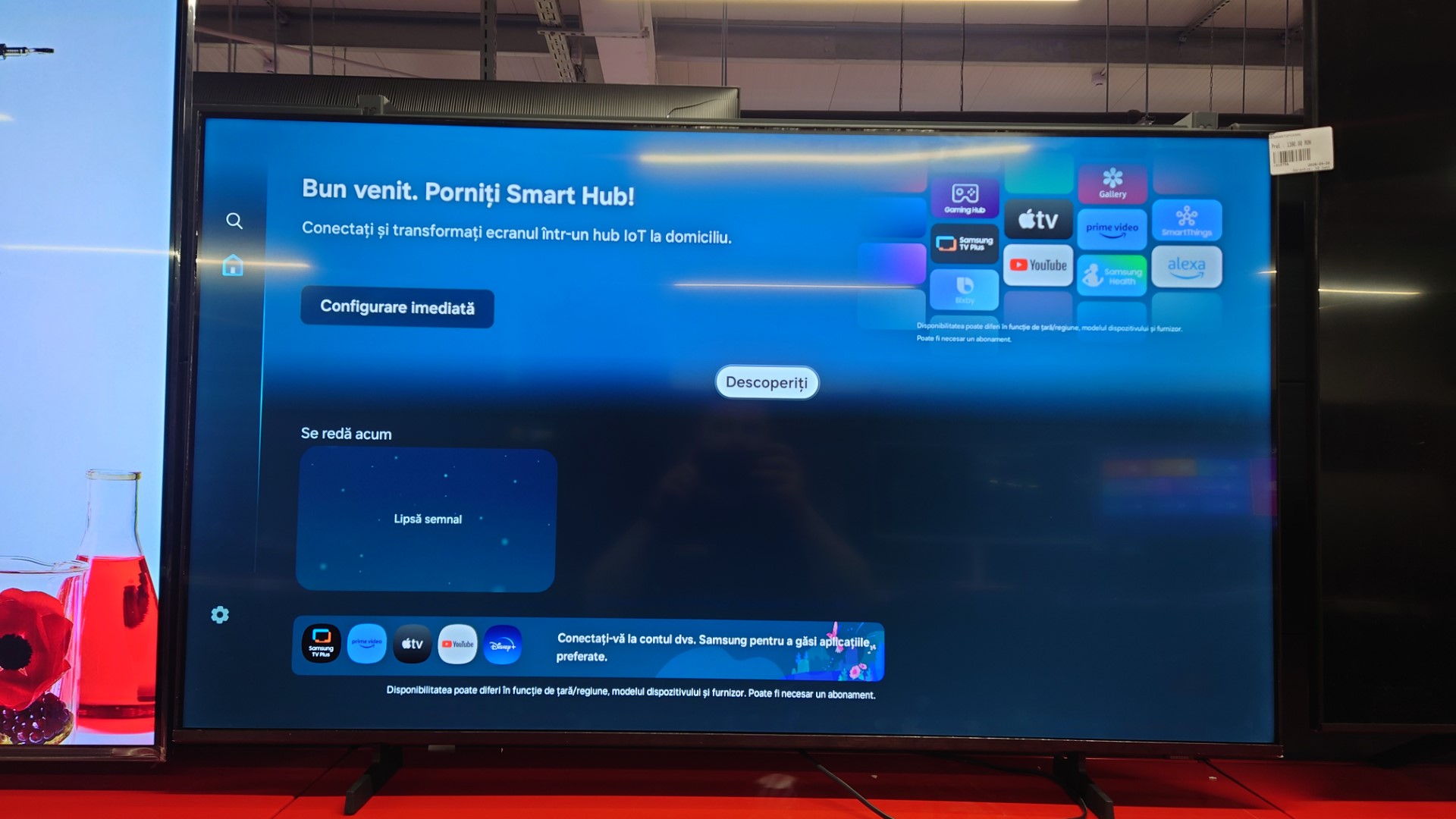 * Samsung poate, in orice moment si la propria sa discretie, fara avertisment sau notificare prealabila, sa modifice serviciile de asistenta vocala sau sa suspende si/sau sa inceteze furnizarea de servicii de asistenta vocala sau orice parte a serviciilor de asistenta vocala. Este posibil ca serviciile TV si capabilitatile imaginii sa nu fie disponibile in toate regiunile si teritoriile. Necesita un cont Samsung.* Comenzile vocale Bixby recunosc engleza (SUA/Marea Britanie), franceza, spaniola, germana, italiana, chineza si coreeana. Nu toate accentele, dialectele si expresiile sunt recunoscute.* Amazon, Alexa si toate siglele asociate sunt marci comerciale ale Amazon.com, Inc. sau ale afiliatilor sai. *Amazon Alexa este disponibil doar pentru anumite regiuni (GB, DE, FR, IT, ES, AT, IE).