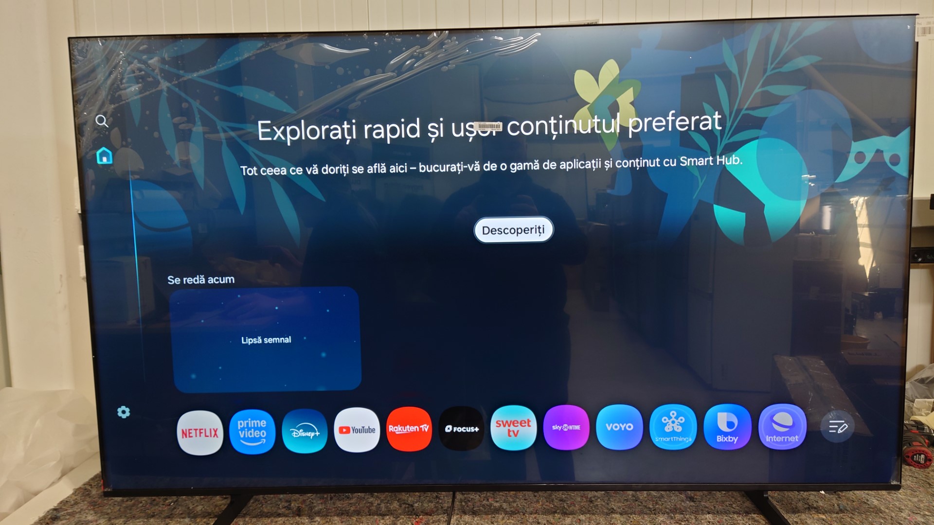 * Tehnologia, funcțiile și caracteristicile disponibile pot varia în funcție de țară, furnizor de servicii, mediu de rețea sau produs și pot fi modificate fără notificare prealabilă.* Necesită o conexiune Wi-Fi, Bluetooth sau altă conexiune de rețea fără fir și autentificare în contul Samsung.* Dispozitivele conectate sunt vândute separat.* Utilizarea Calm Technology necesită acordul atât pentru notificările de confidențialitate ale SmartThings, cât și ale dispozitivului înregistrat automat.* Televizorul și dispozitivul mobil trebuie să fie conectate la SmartThings pentru a utiliza funcția 3D Map View. Pentru o listă detaliată a dispozitivelor acceptate vizitează https://partners.smartthings.com/supported-devices.* Interfața de utilizare poate fi modificată fără o notificare în prealabil.