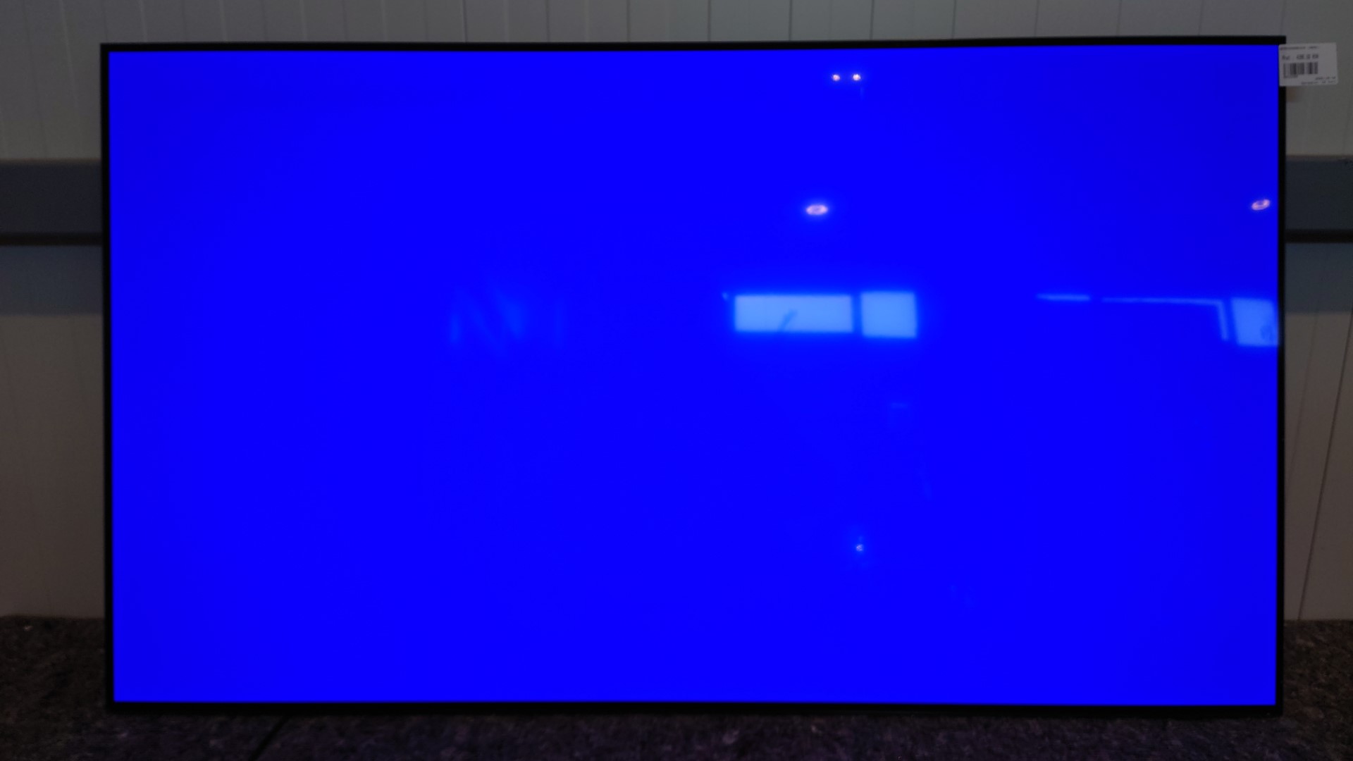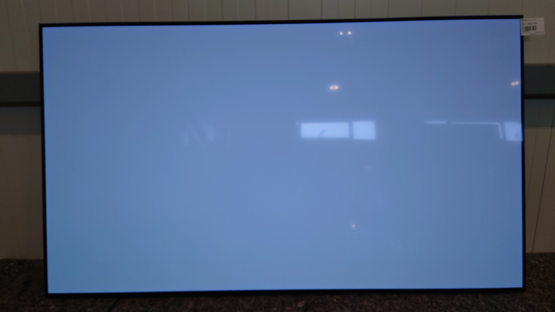 Cipul de procesor NQ4 AI Gen2 coboară pe placa principală a televizorului și se aprinde cu valuri de putere care trec de la cip către restul televizorului.