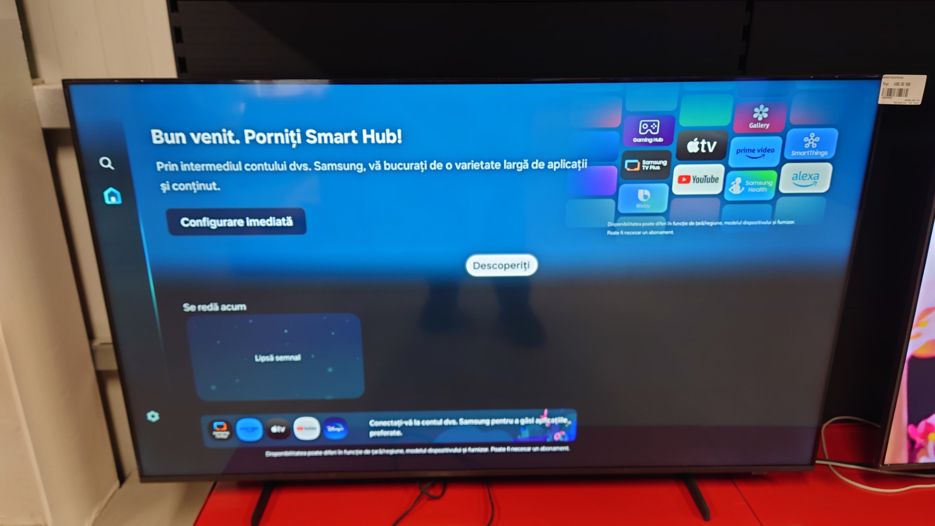 * Continutul si serviciile pot varia in functie de regiune si pot fi modificate fara notificare.* Inainte de utilizare este necesar acordul cu Termenii si Conditiile Smart Hub si cu Politica de confidentialitate.* Unele continuturi si servicii necesita inregistrare si abonament.* Necesita un cont Samsung.* Actualizarile sistemului de operare Tizen vor fi acceptate timp de pana la 7 ani, incepand cu 2025, pentru produsele lansate in anul 2025.* Te rugam sa retii ca actualizarea nu acopera performanta, caracteristicile sau durabilitatea componentelor.