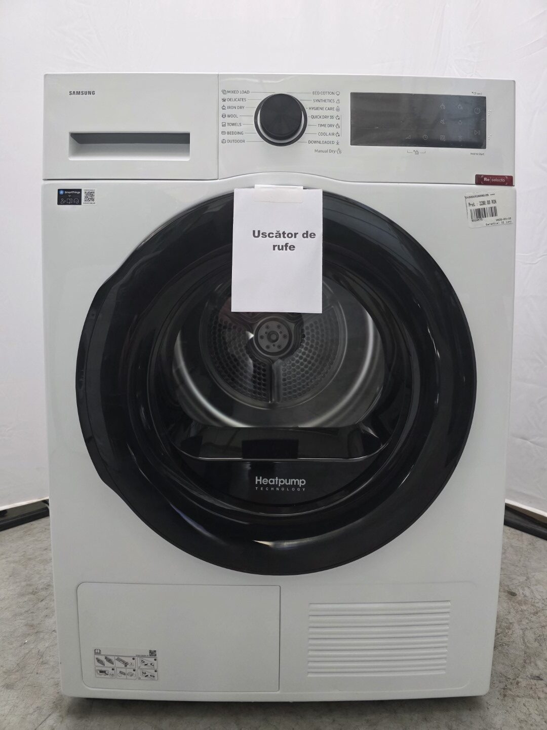 Uscator de rufe Samsung, 9 KG, Clasa C, Pompa de caldura, Smart Things, Quick Dry, Optimal Dry, WiFi, Alb, DV90DG52A0AE