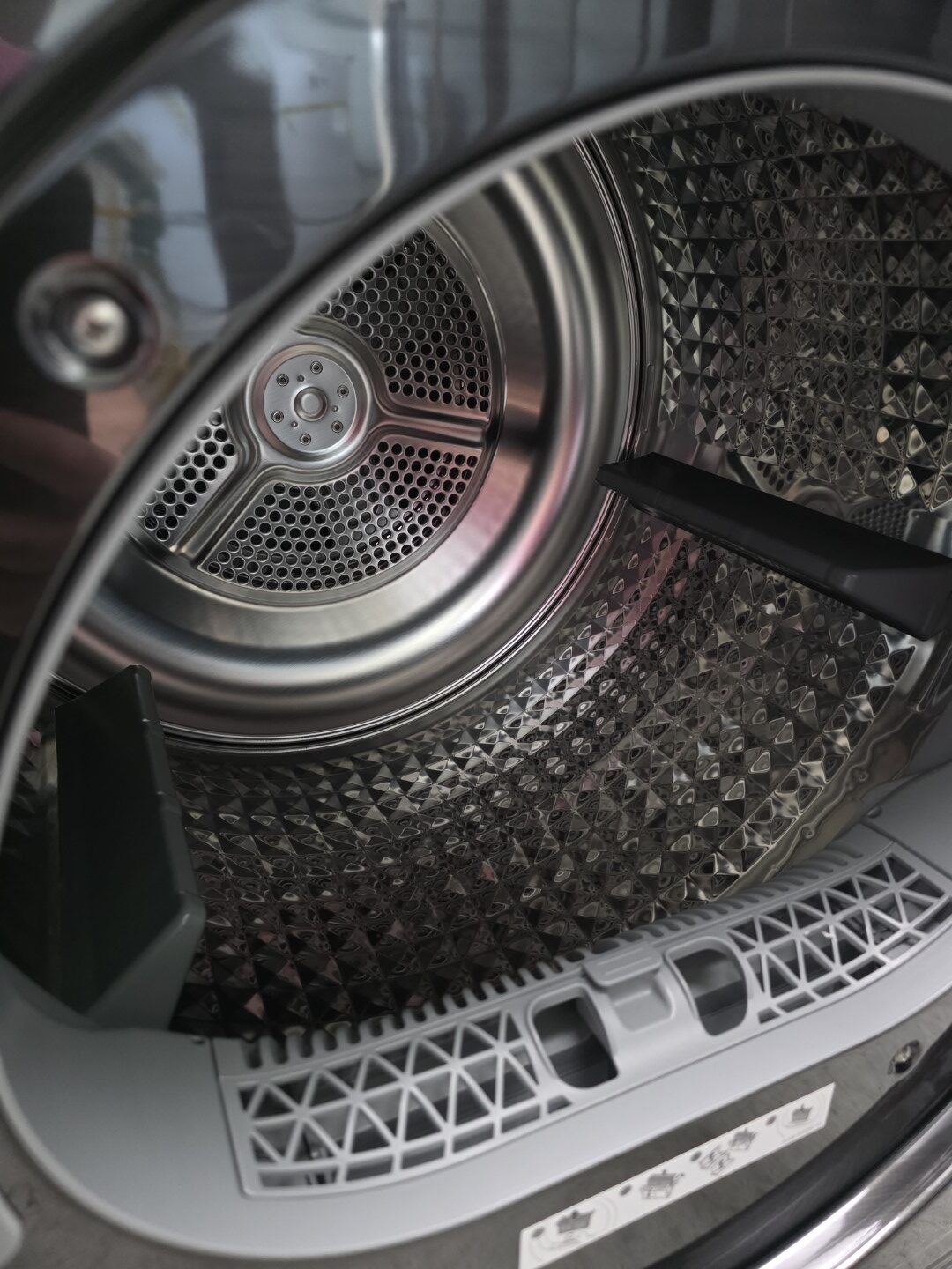 Redu cutele hainelor fara a le calca. Pur si simplu selectezi Wrinkle Prevent si, odata ce ciclul de uscare se incheie, va intoarce tamburul intermitent, fara caldura, timp de pana la 180 de minute. Impiedica hainele sa stea intr-un singur loc pentru mult timp cand sunt fierbinti, astfel incat sa nu se formeze cute in tesatura.